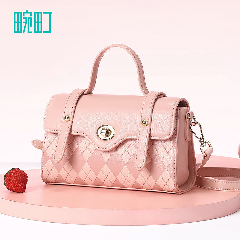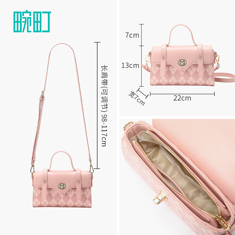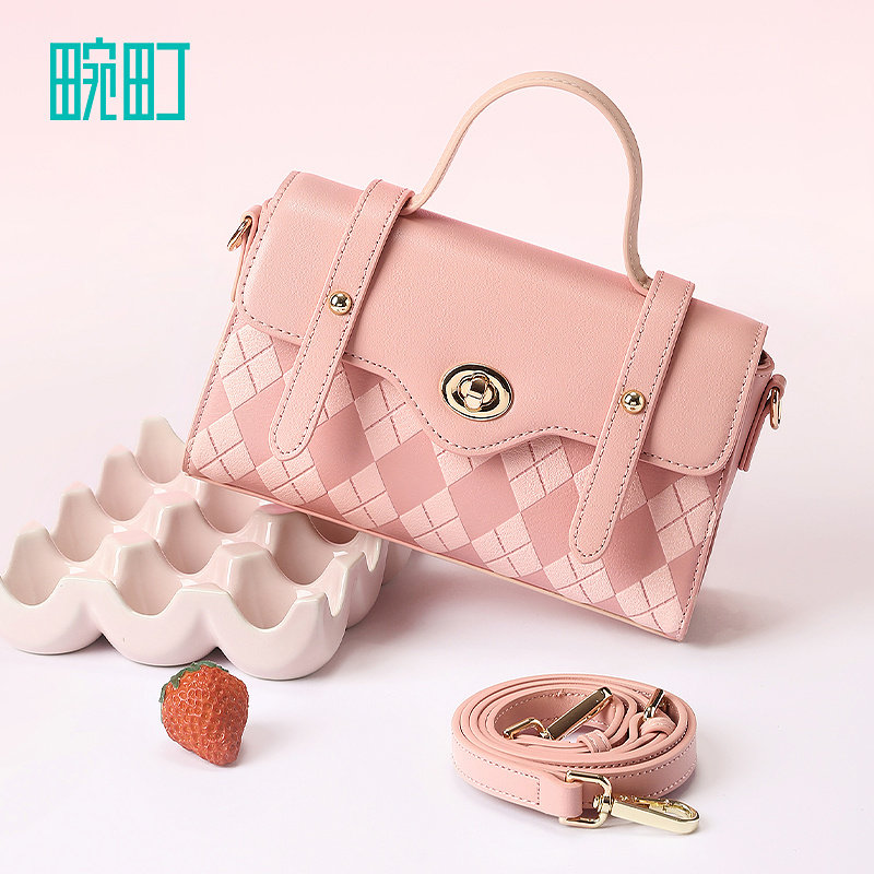 畹町菱形格花纹系列小方包多巴胺女包少女时尚 通勤斜挎手提剑桥包