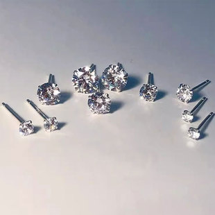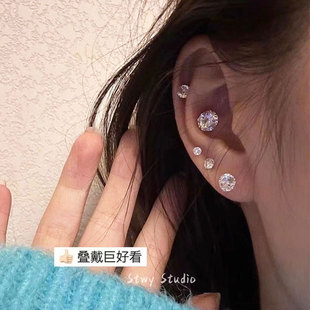 Z小姐999足银锆石养耳洞耳钉睡觉免摘螺旋拧扣纯银耳骨钉耳饰男女