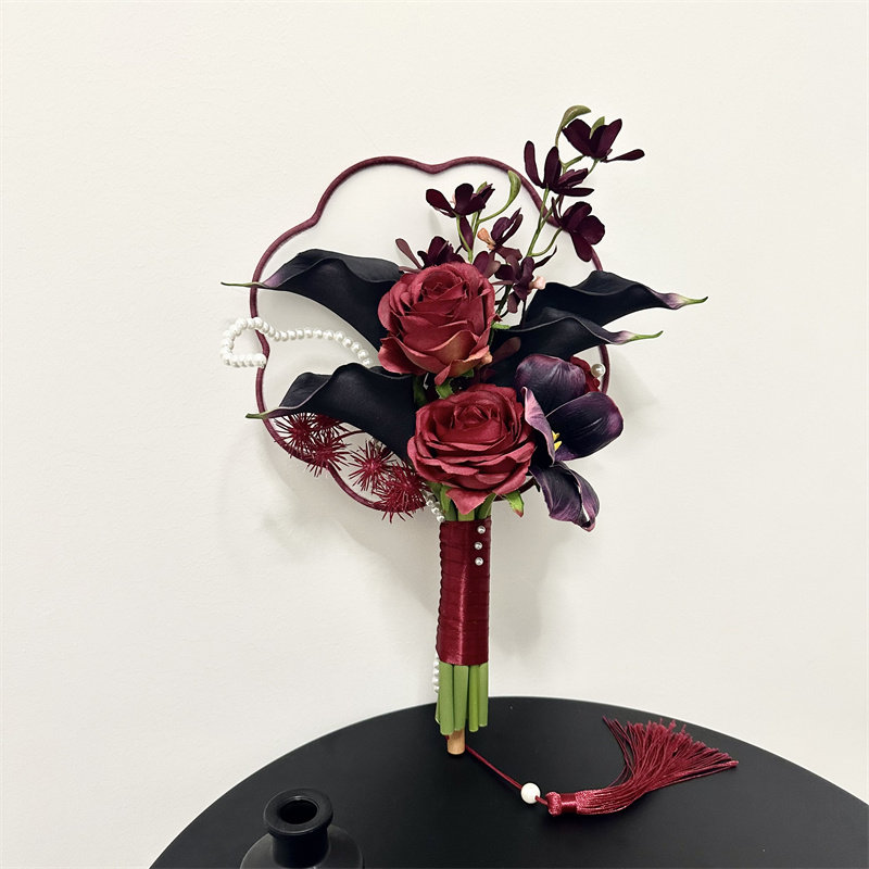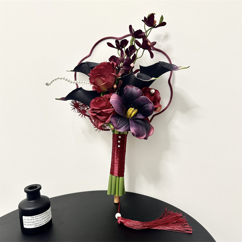 新中式 新娘手捧花晨袍接亲成品团扇婚纱摄影道具花束领证登记手捧