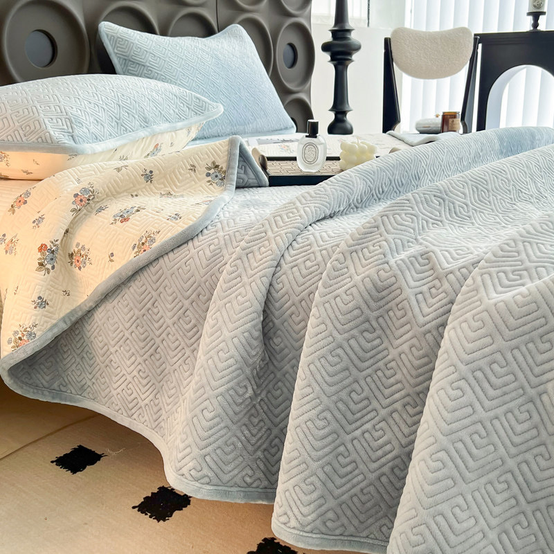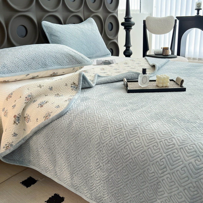 牛奶绒床盖保暖绗缝加厚夹棉床单三件套榻榻米防滑炕盖水晶绒双面