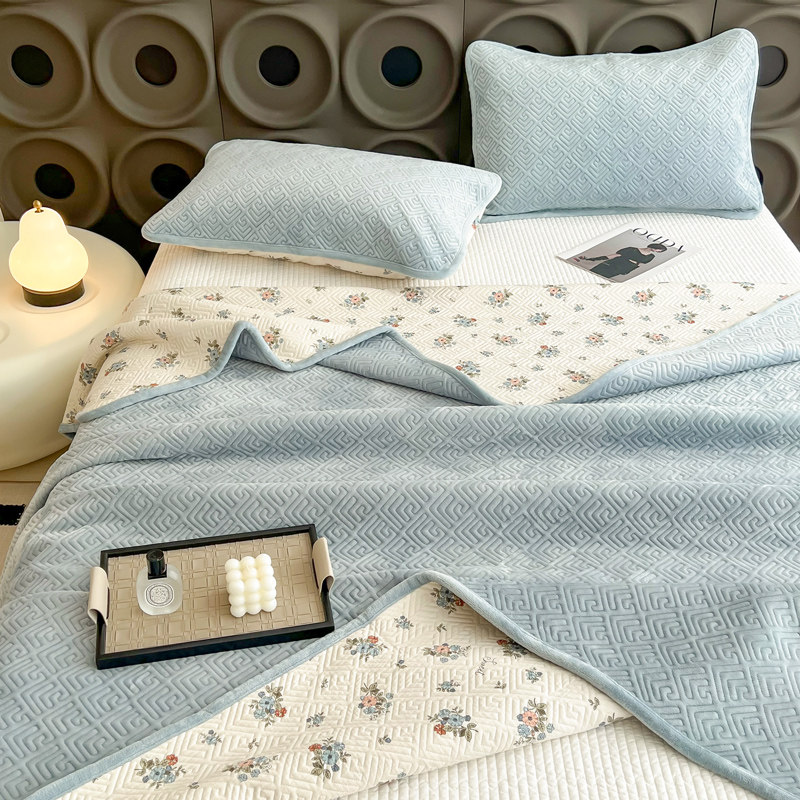 纯棉牛奶绒床盖一面绒一面棉毯加厚床单绗缝全棉加绒夹棉双面可用
