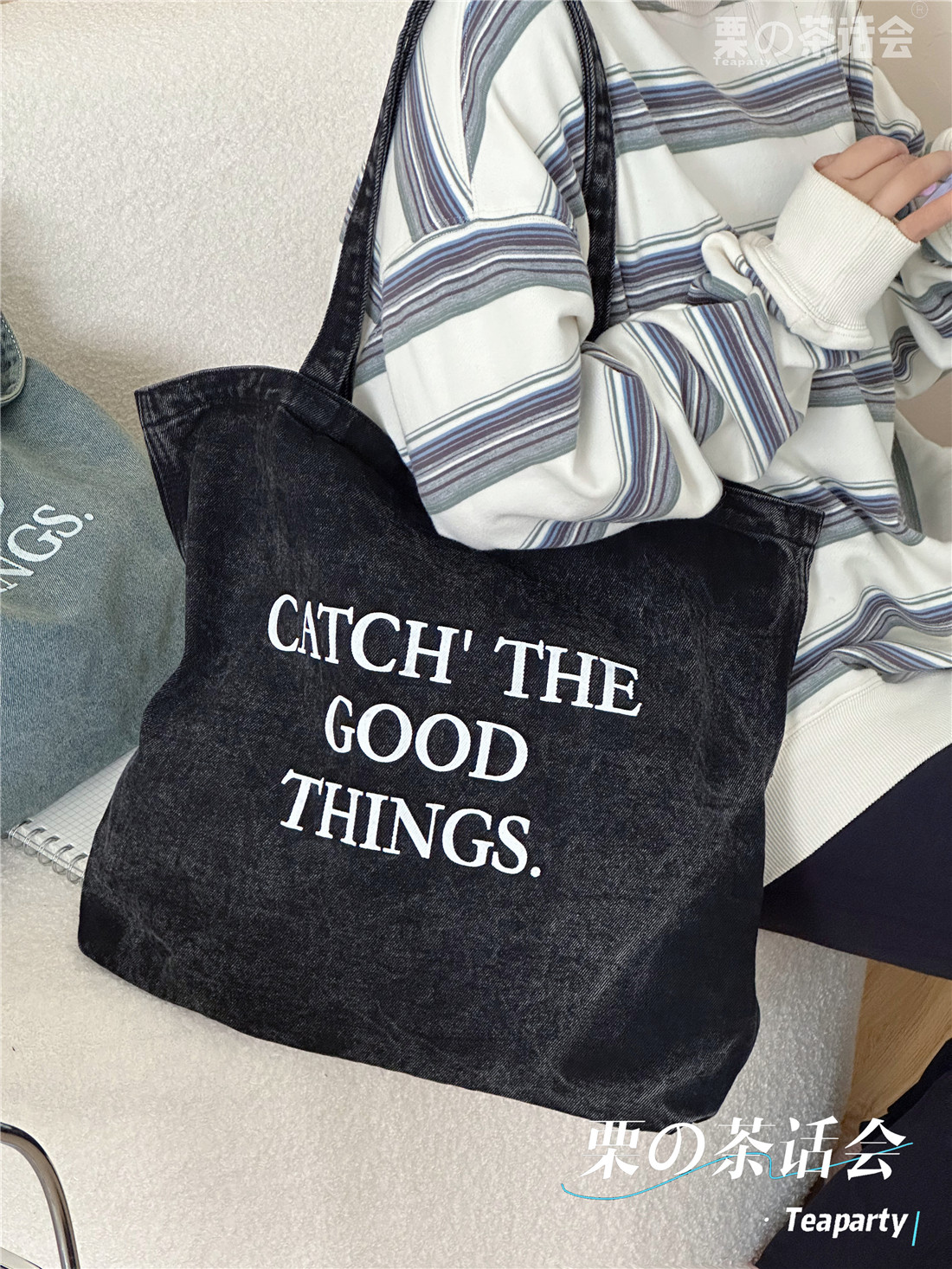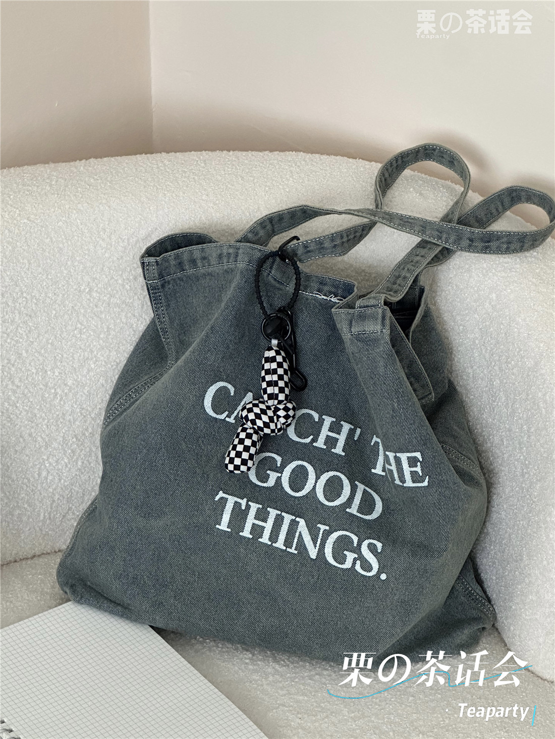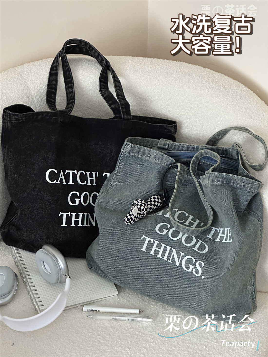 美式 大学生上课通勤逛街百搭手提大容量单肩包 休闲牛仔包包女