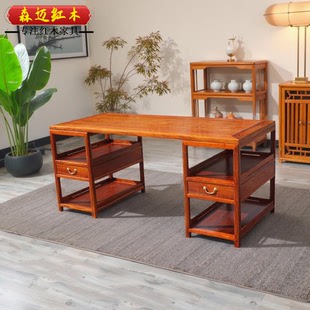 缅甸花梨木书桌中式 实木大果紫檀办公桌红木写字台家用书法画案桌