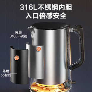 美 电热水壶316L不锈钢家用2L升大容量电开水壶全自动一体烧水壶