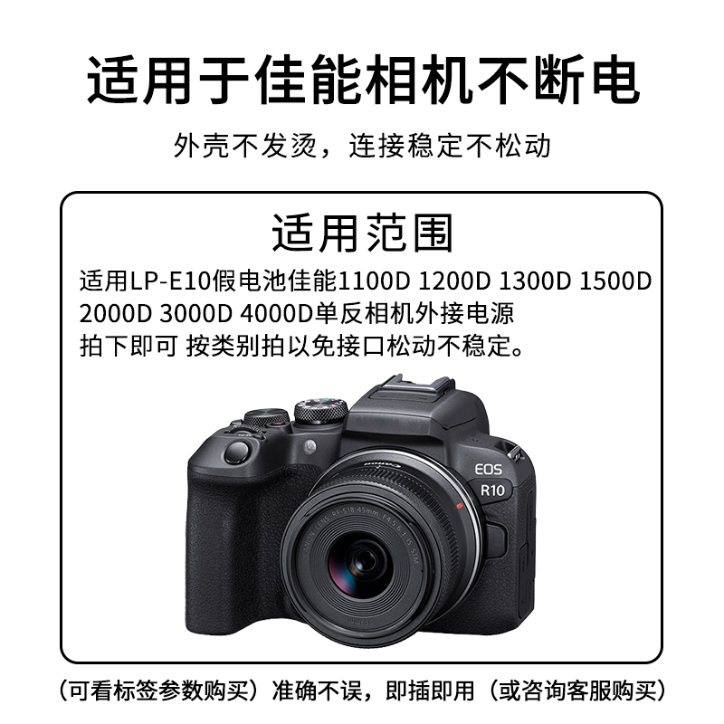 1300D 1200D 1500D 2000D 4000D单反相机适配器 适用佳能LP 3000D E10假电池外接电源供电视频直播佳能1100D