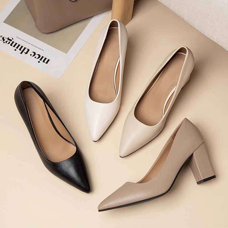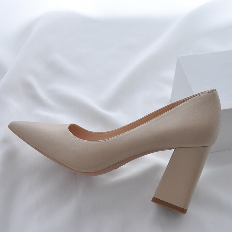 子女百搭工作浅口尖头单鞋 裸色高跟鞋 仙女鞋 春季 女细跟2023新款