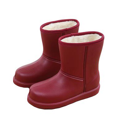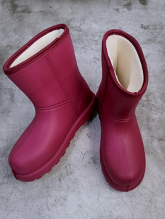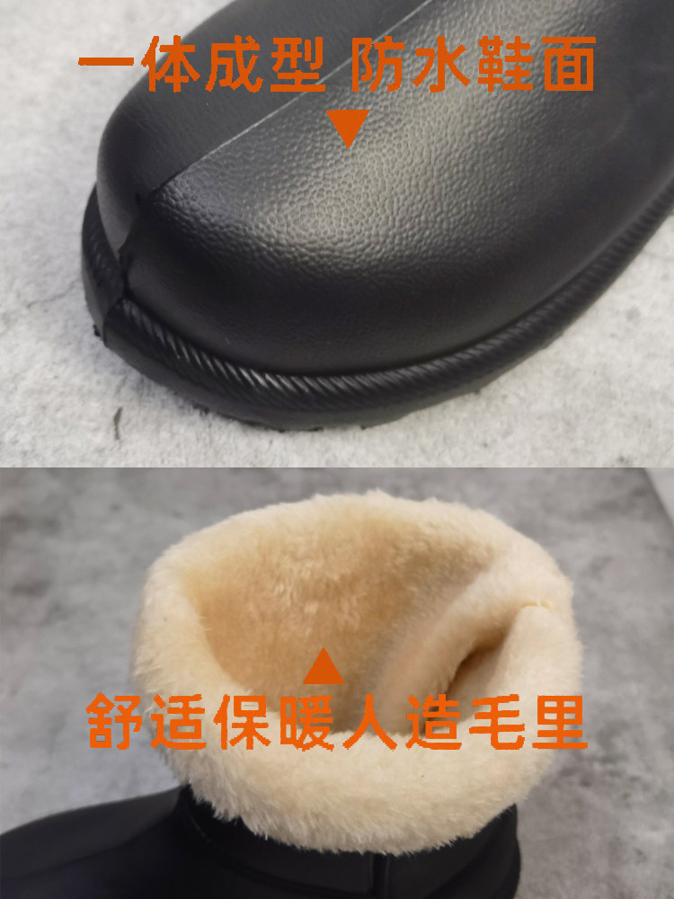水靴一体绒厚底胶鞋 加厚保暖防水棉雨靴男冬季 女加绒防滑水鞋 雨鞋