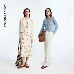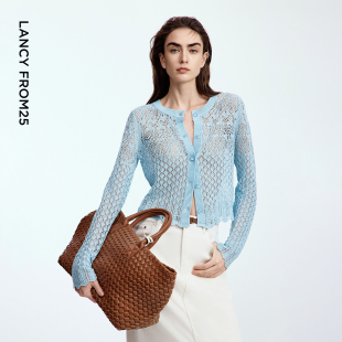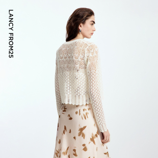 高级感气质通勤修身 新款 外搭长袖 2025年秋季 罩衫 朗姿镂空针织开衫