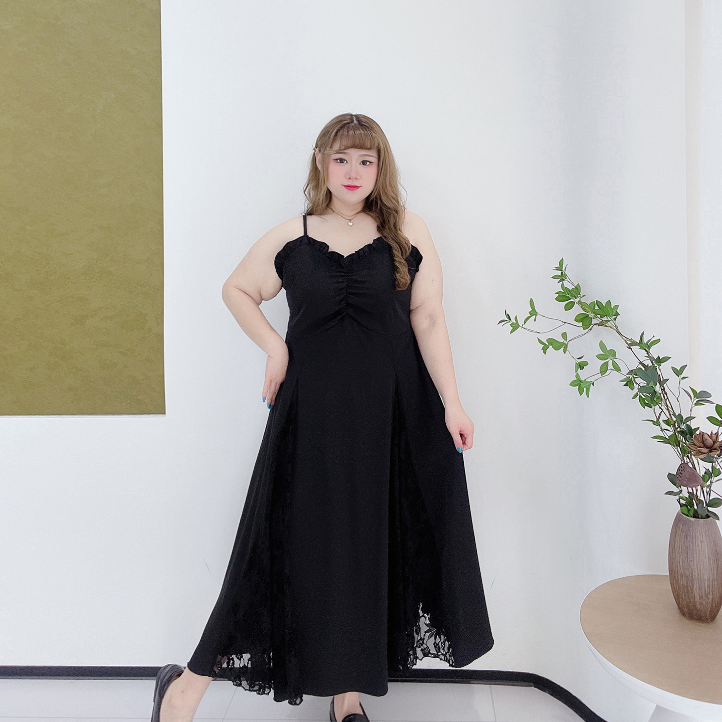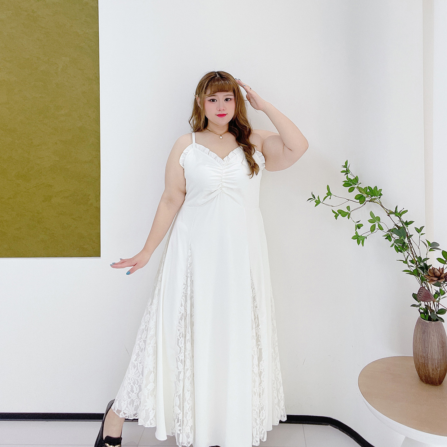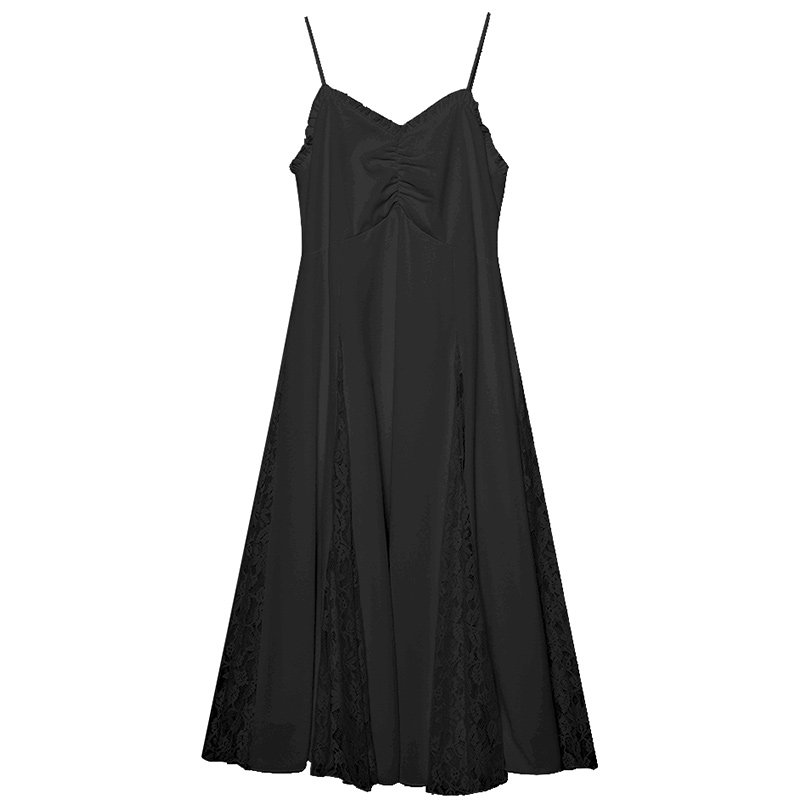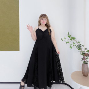 夏季 女装 拼接蕾丝气质过膝长裙 显瘦吊带连衣裙胖莹莹大码 2026新款