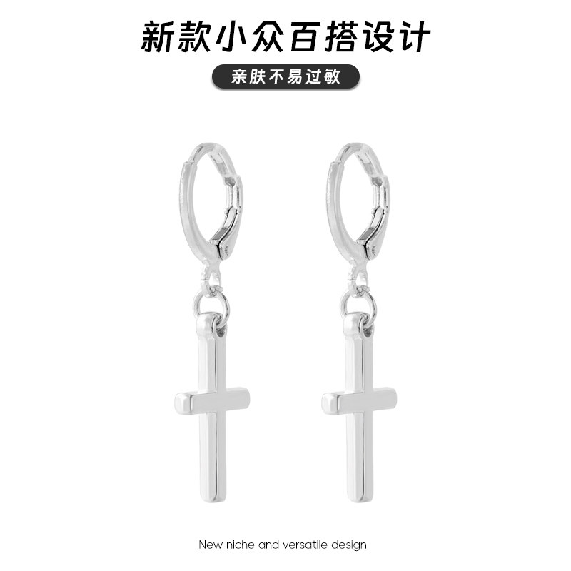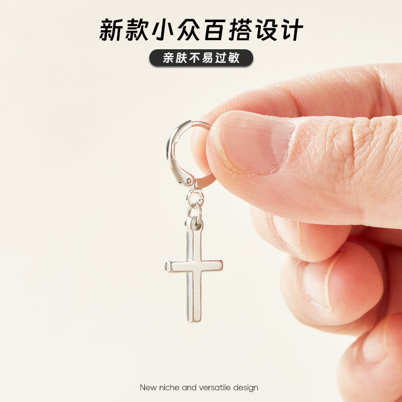 新款 潮素圈耳环女简约冷淡风高级感耳饰耳环 十字架耳扣2025年新款