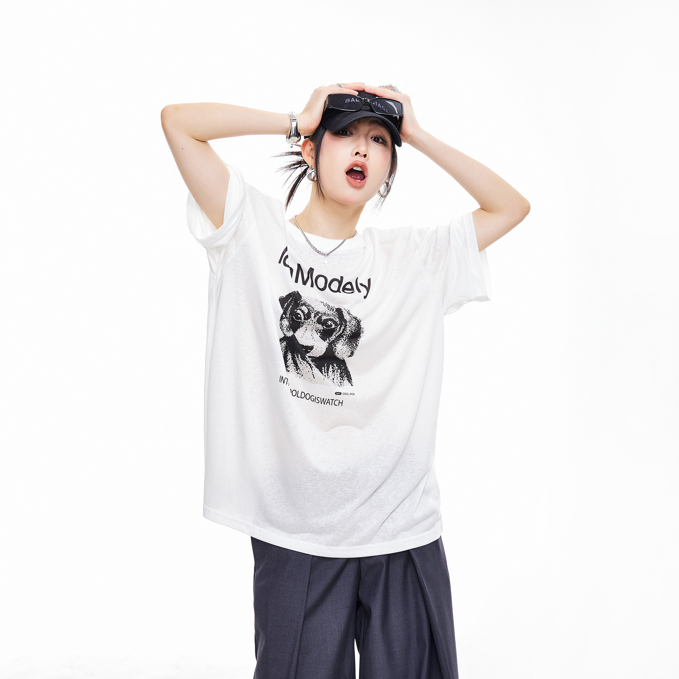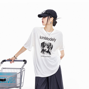 薄款 短袖 上衣半袖 MODE 宽松物理防晒罩衫 美式 新款 ICH T恤女夏季