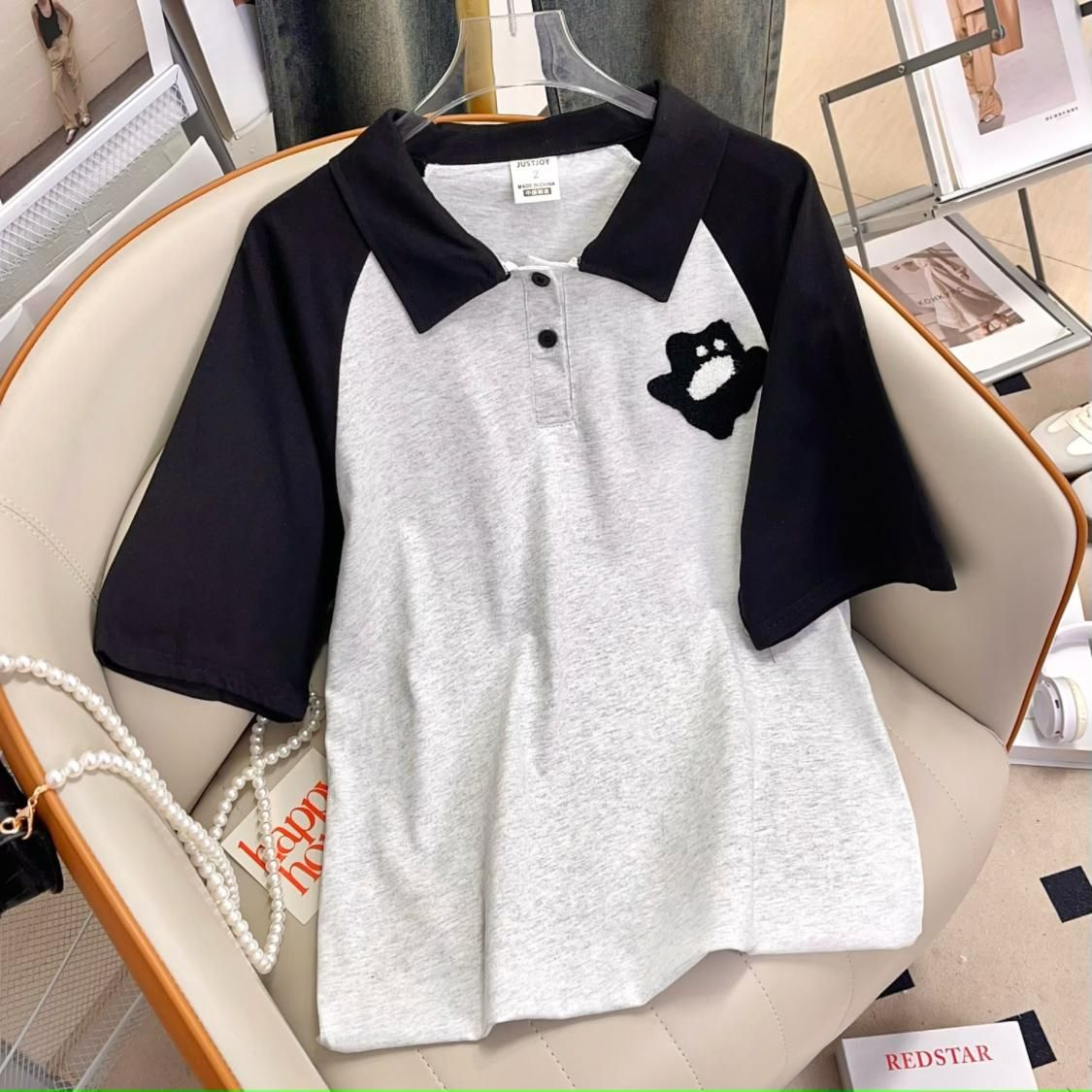 上衣 复古卡通刺绣polo领体恤翻领短袖 原创 21支210g精梳纯棉美式