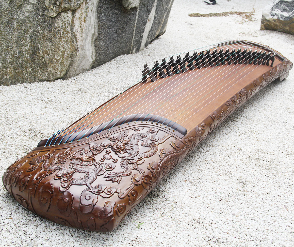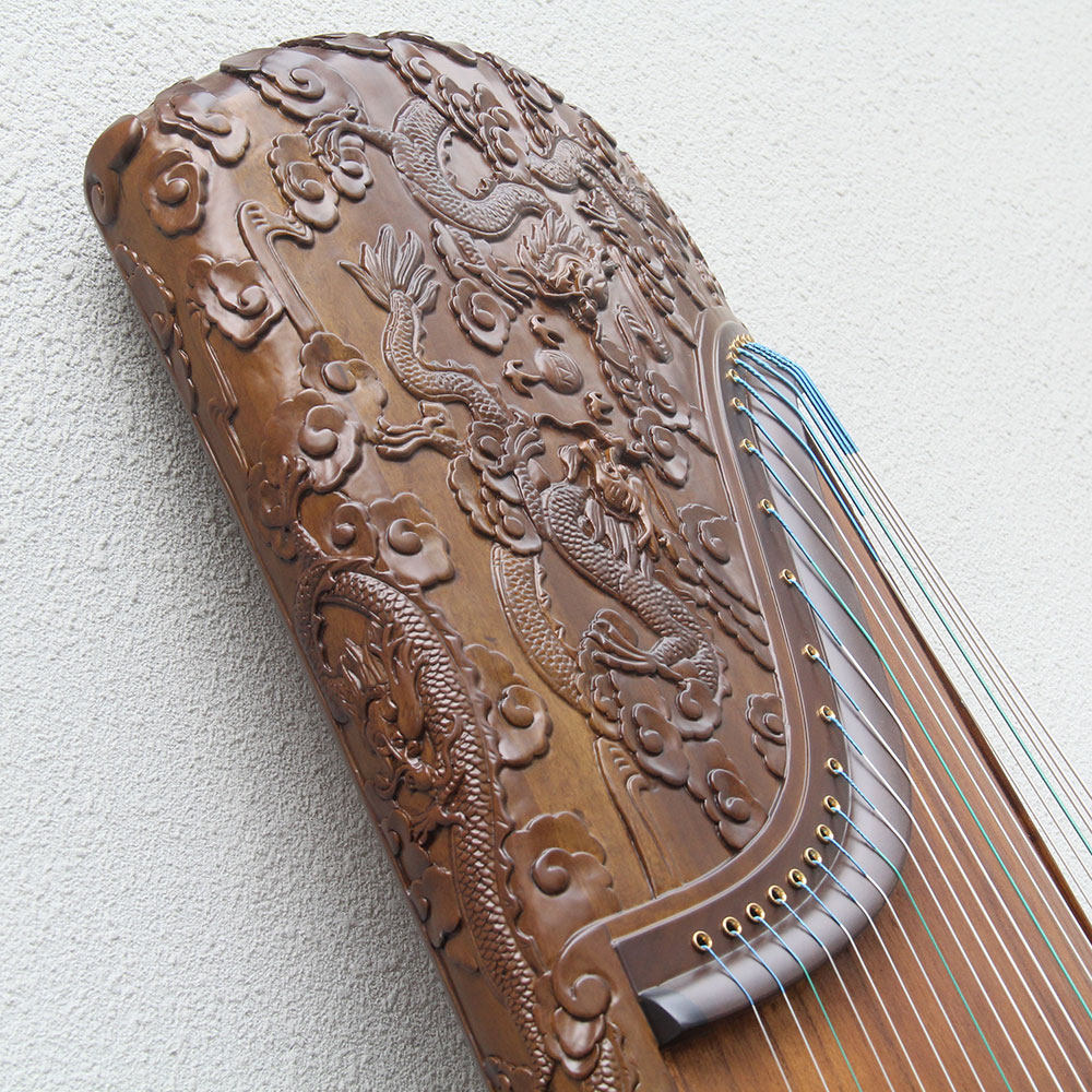 金丝楠木满雕九龙专业考级演奏收藏级别汉唐工艺琴筝面挖半挖古筝
