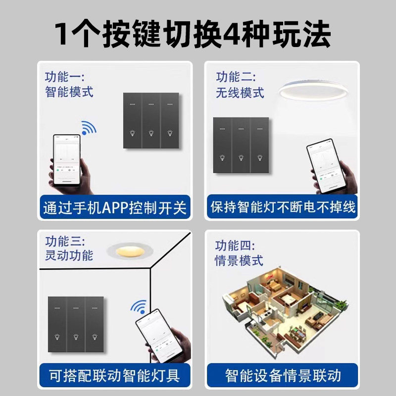 无线遥控开关智能家用灯220v远程面板免布线随意贴86型单双开双控