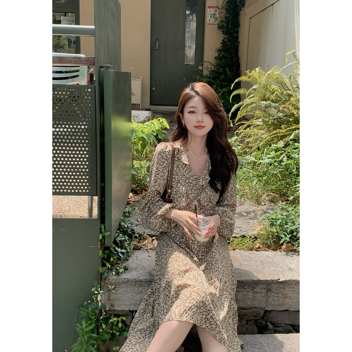 法式 背心吊带连衣裙秋季 2025女装 一字肩波嬉风裙1289932