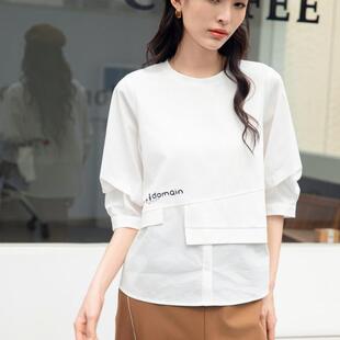 P3S015 专柜2024秋设计感不对称轻盈印花显瘦衬衫 ART艺域女装 正品