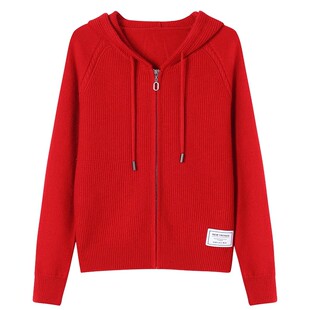 羊毛衫 连帽针织衫 短款 女士秋装 拉链带帽卫衣春秋羊绒毛衣外套 开衫