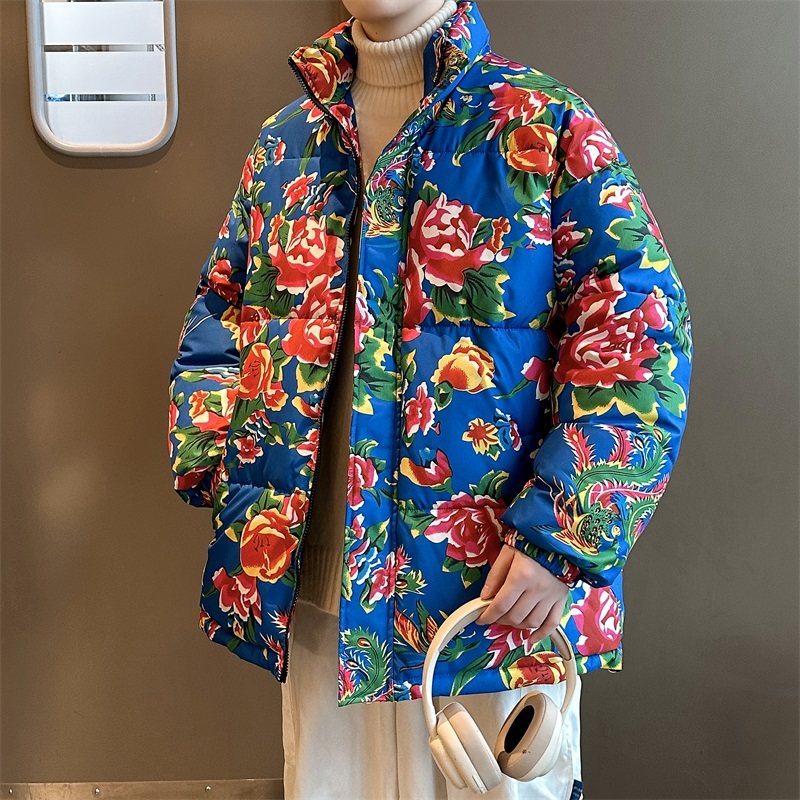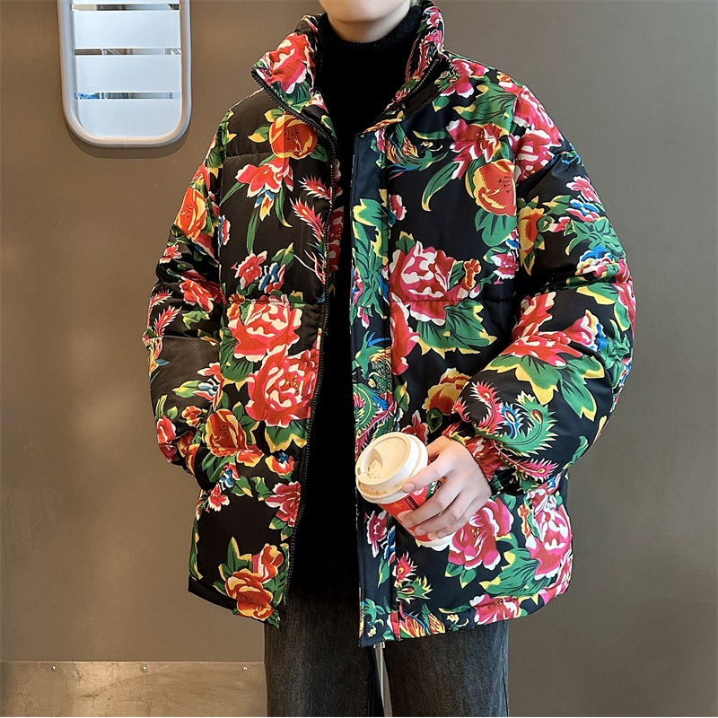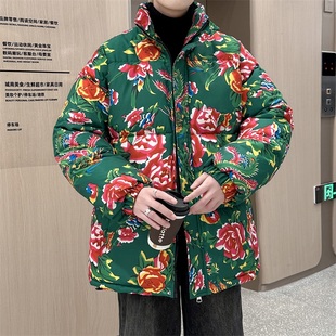 东北超厚大花布棉袄子男生防寒保暖羽绒棉服外套2024新款 国潮棉衣