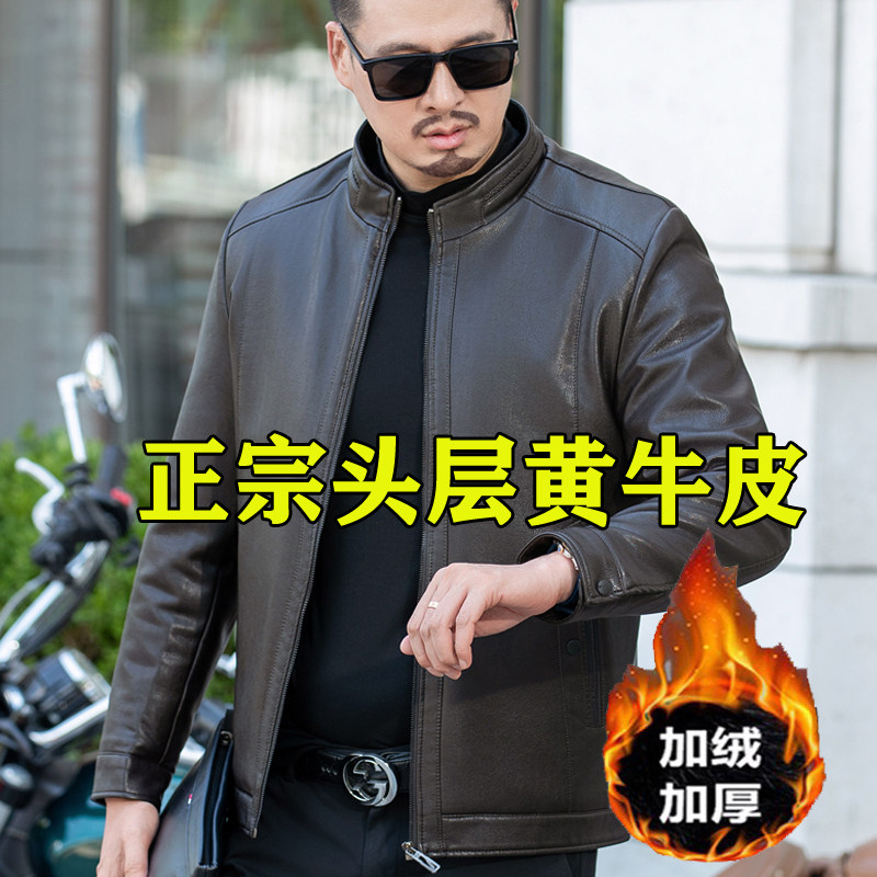 真皮皮衣男2025新款 中年海宁头层小牛皮夹克外套羽绒服加厚高级感