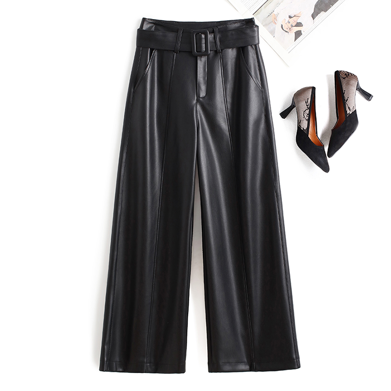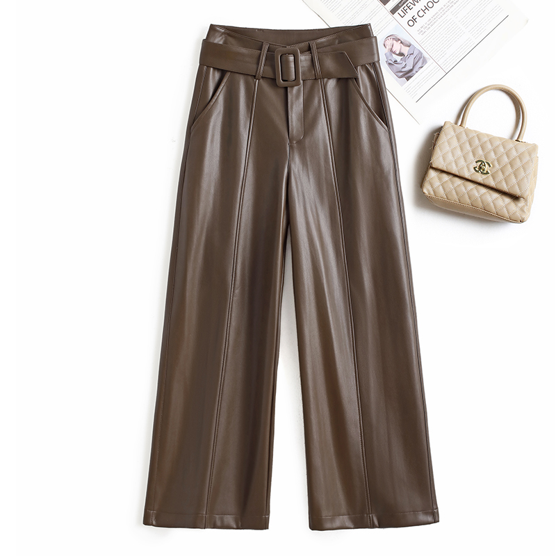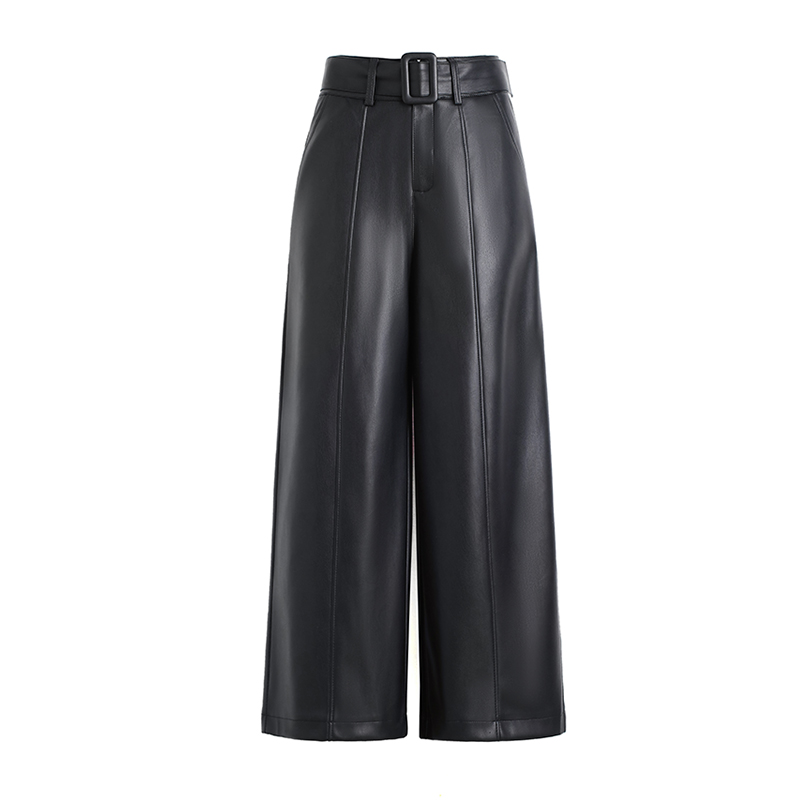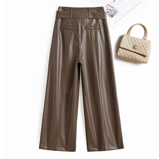 绵羊皮宽松显瘦阔腿直筒休闲裤 2025秋冬新款 女九分裤 海宁真皮皮裤