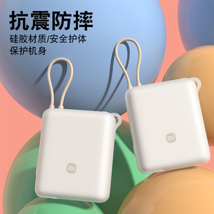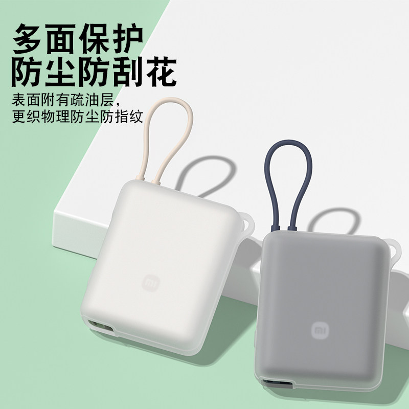 适用小米自带线充电宝硅胶保护套10000毫安33W自带线保护套防摔全包防划软壳挂绳保护套硅胶卡通可爱透明