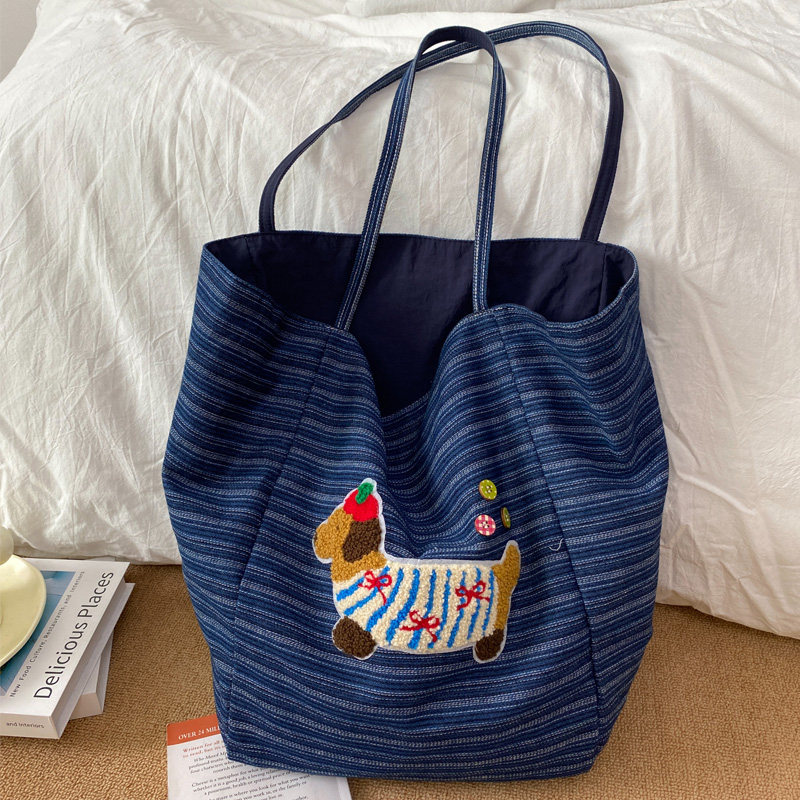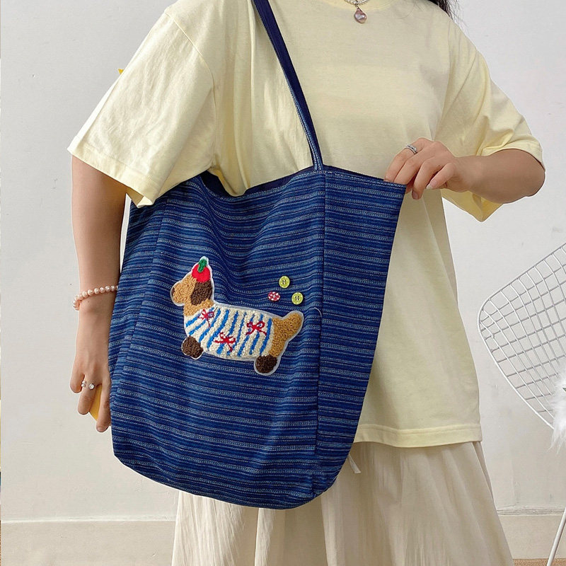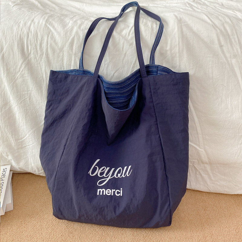 双面背新款 大容量帆布包女单肩手提袋学生上课托特包包通勤腋下包