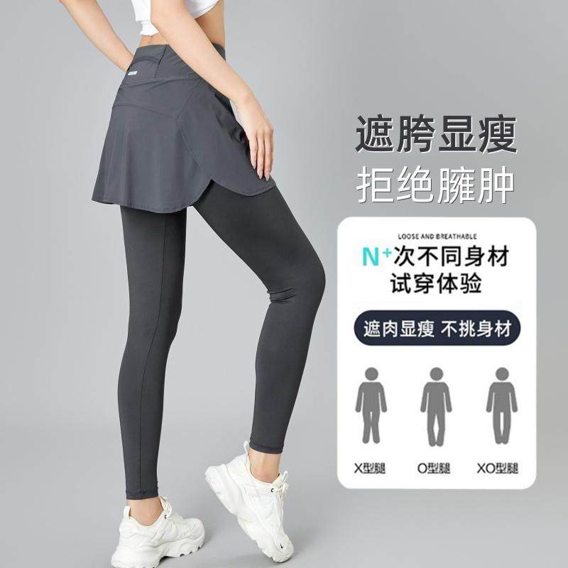 子 速干跑步裤 女运动裤 裙假两件健身瑜伽遮臀裙羽毛球高腰显瘦秋季