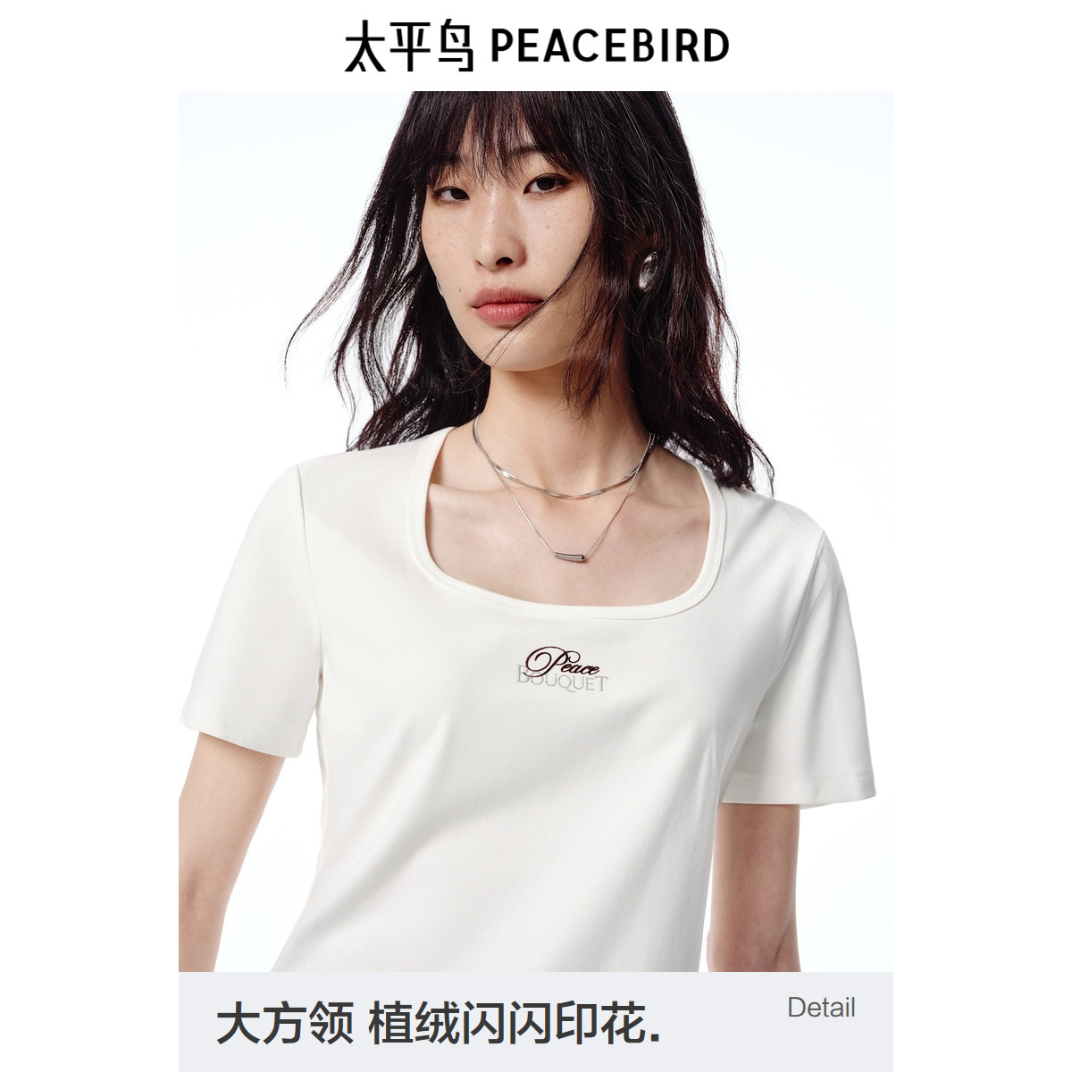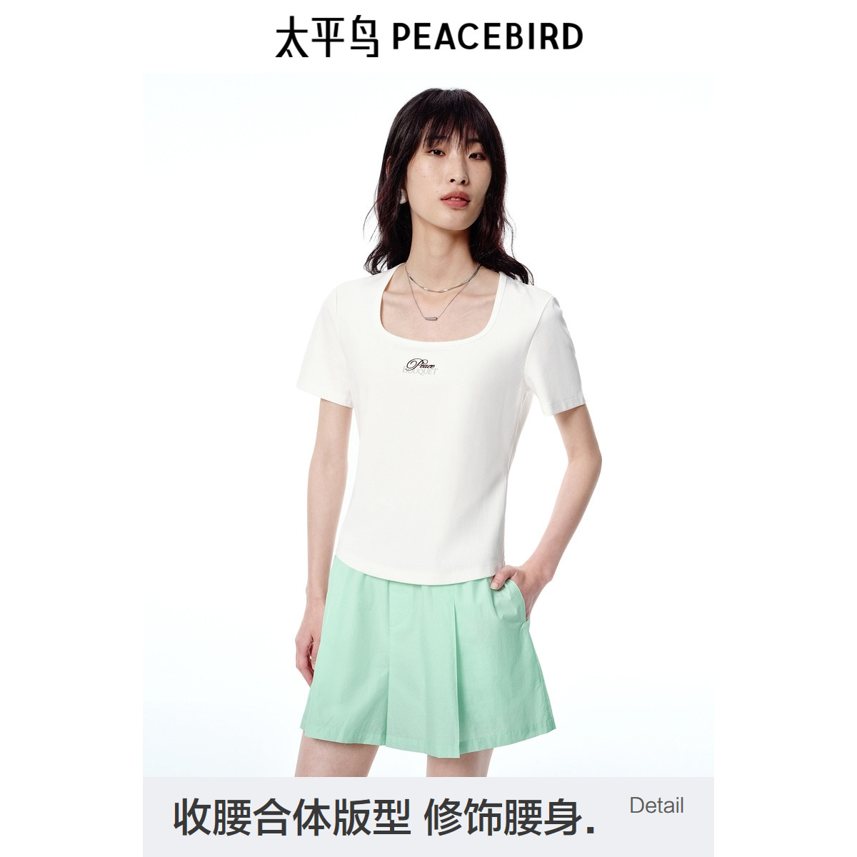 T恤女A1CNF2441 收腰合身U型大方领棉柔质感短袖 太平鸟女装 夏季