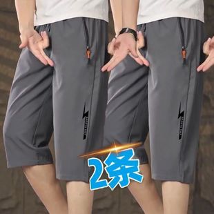 休闲裤 子潮 夏季 速干裤 男士 冰丝短裤 衩大码 大裤 薄款 男款 潮牌七分裤