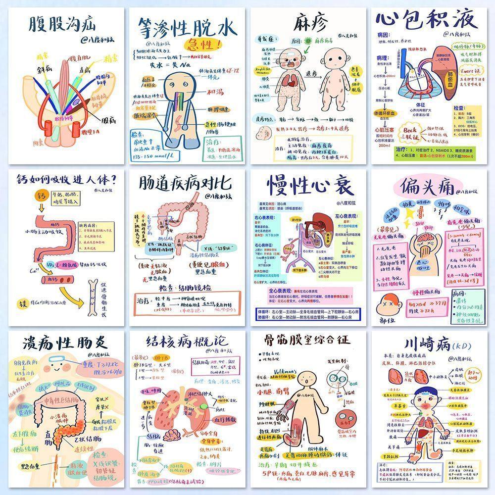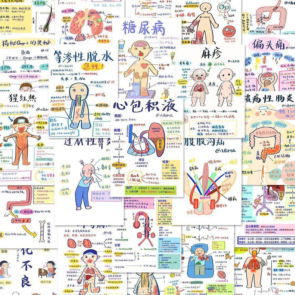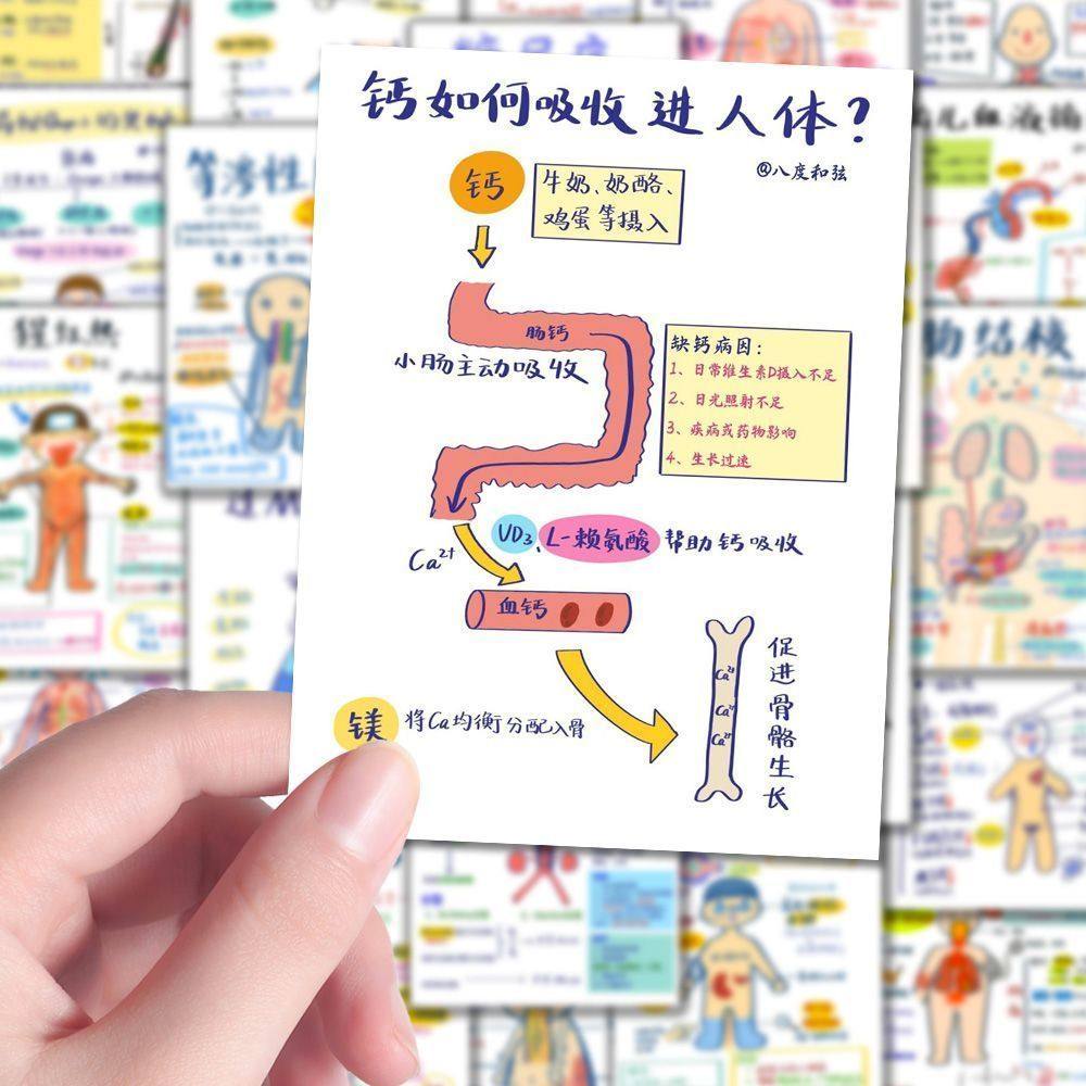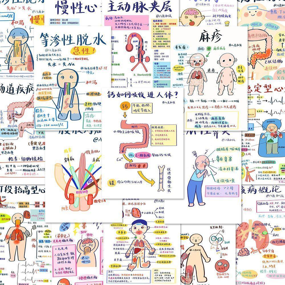 医学笔记解剖贴纸创意手绘笔记手机桌面diy自粘手机壳玩具标签学习装 96张爆款 饰防水贴画 大图释官方授权