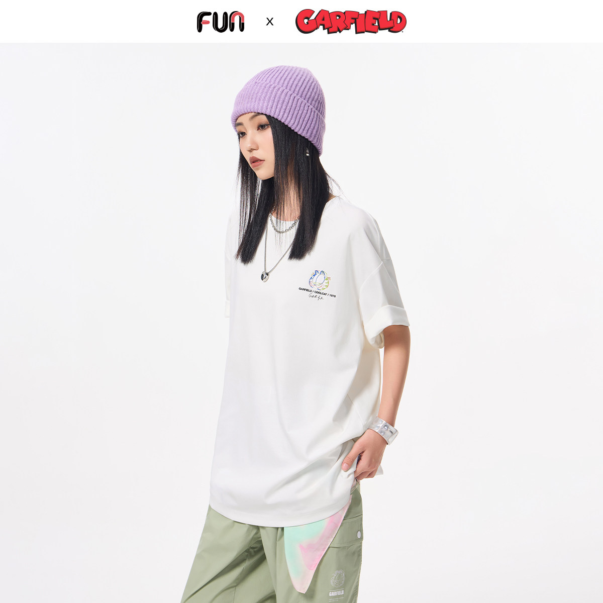 加菲猫联名卡通印花圆领上衣 2025年夏季 Fun潮牌短袖 T恤情侣装