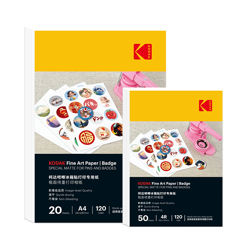 柯达吧唧专用纸徽章打印纸图案打印纸彩喷纸喷墨打印照片纸彩色打印纸素材纸A4胸章徽章手绘涂鸦空白纸高清