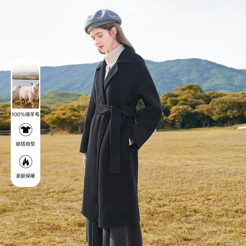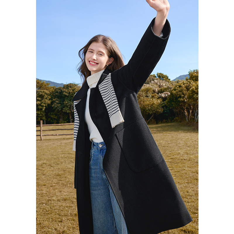 高级感极简风大衣气质优雅纯色中长款 毛呢外套 双面呢女式