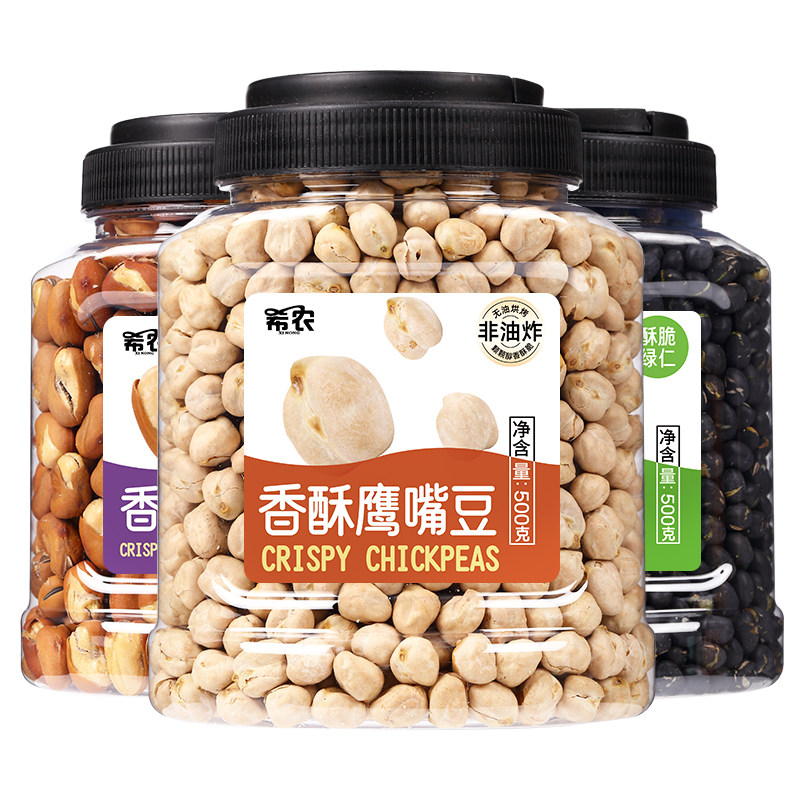希农鹰嘴豆罐装 500g炒黑豆蚕豆熟即食盐焗无添加糖非油炸年货零食
