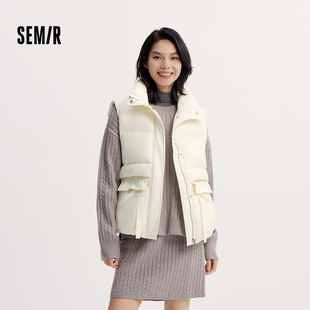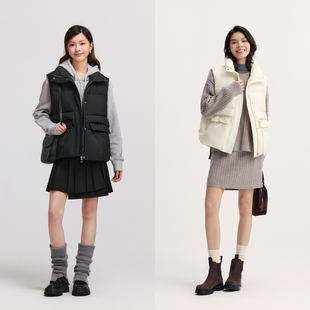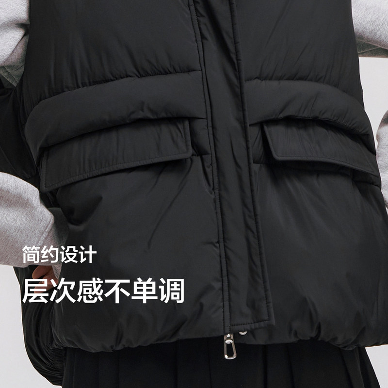 森马棉马甲女2025冬防水纯色百搭oversize立领外套黑色 商场同款