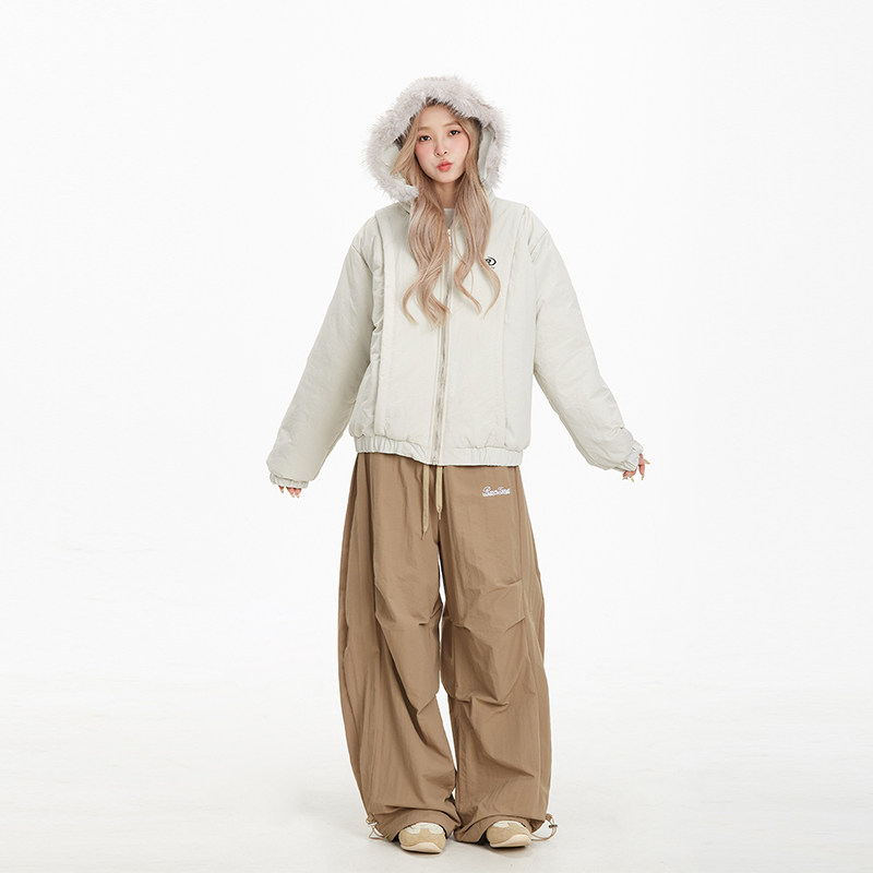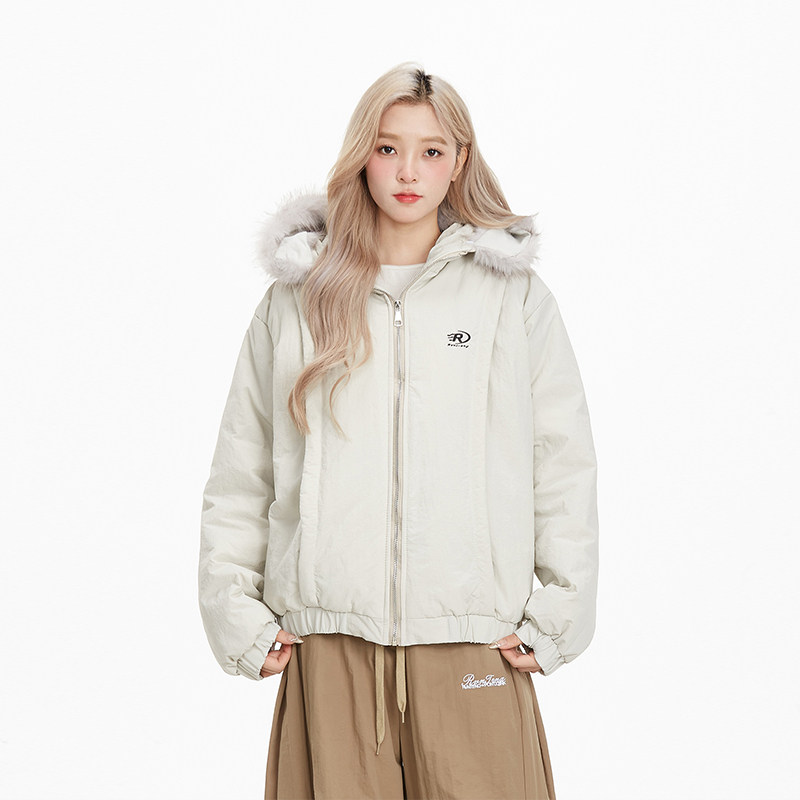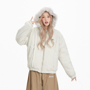 潮牌保暖休闲棉衣棉服 美式 NERESUM冬季 毛领连帽派克服女2024新款