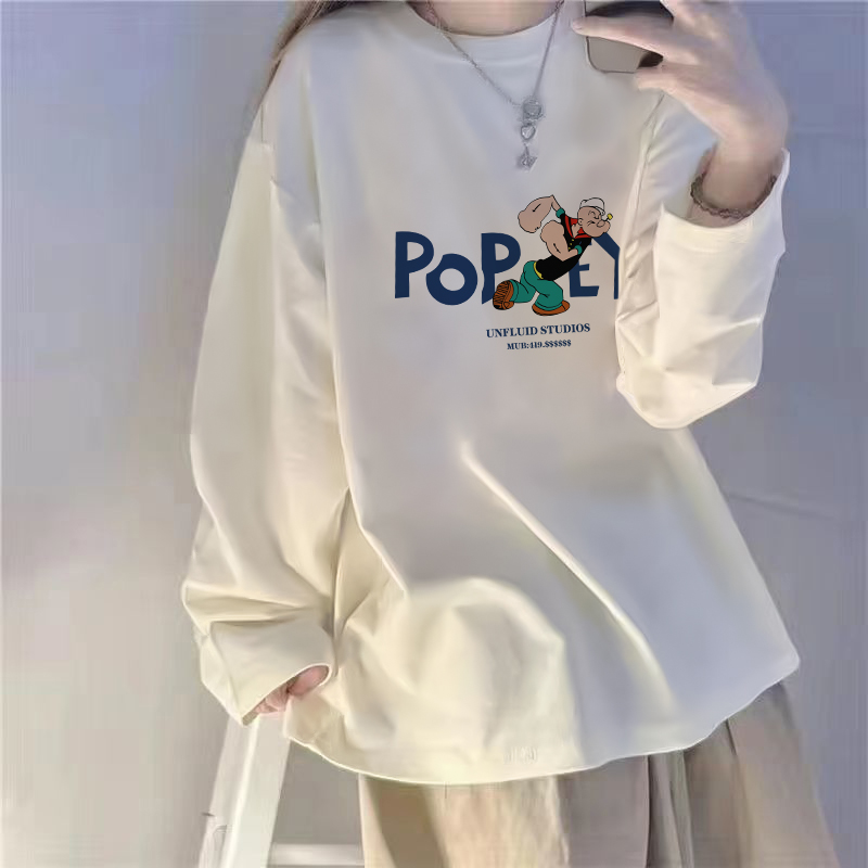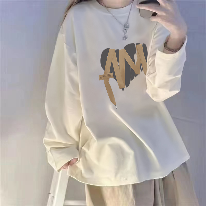 宽松上衣 t恤女显瘦新款 圆领加绒白色打底衫 女秋冬内搭可外穿长袖