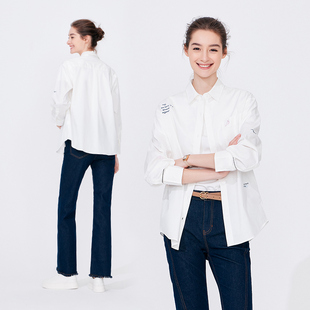 白色通勤职业女装 女春季 衬衣 衬衫 Navigare意大利小帆船宽松长袖