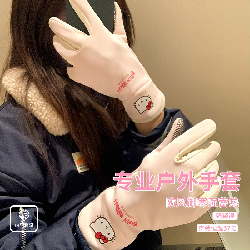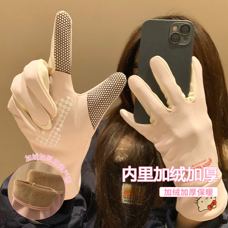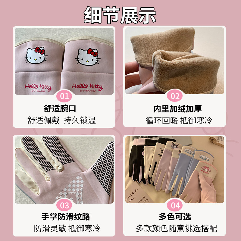 可爱哈喽Kitty毛绒手套女款 秋冬骑行开车保暖露指针织可触屏防寒