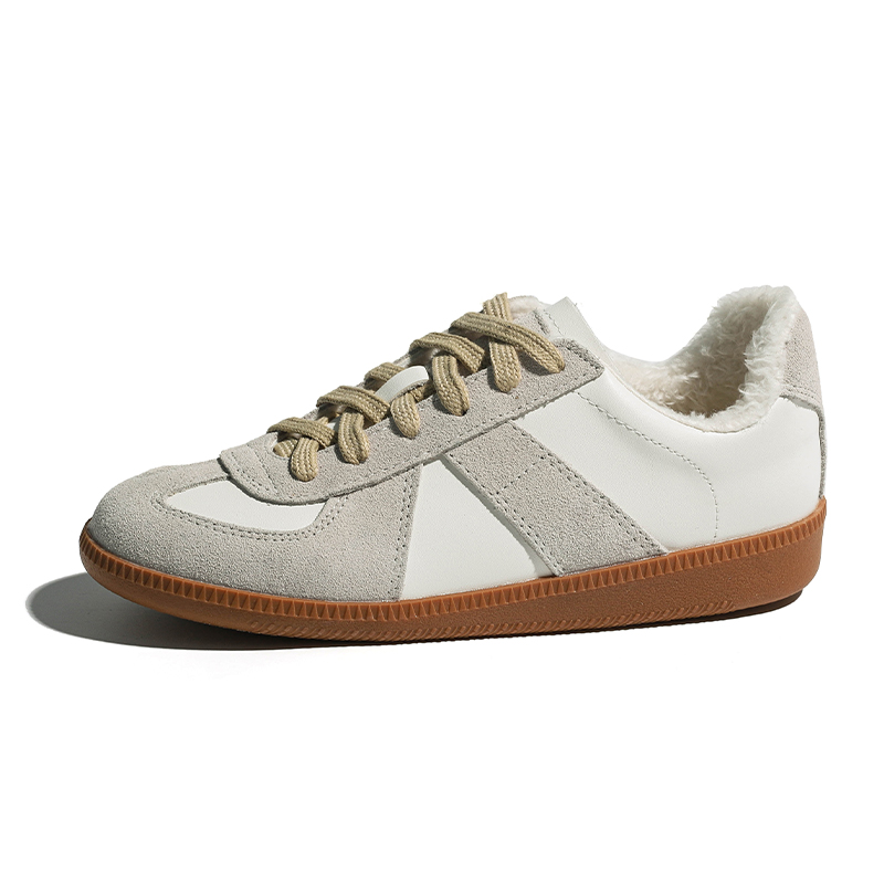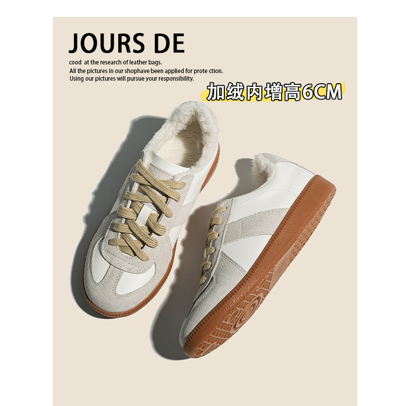 内增高复古休闲阿甘板鞋 牛皮加绒德训鞋 真皮平底小白鞋 新款 女冬季