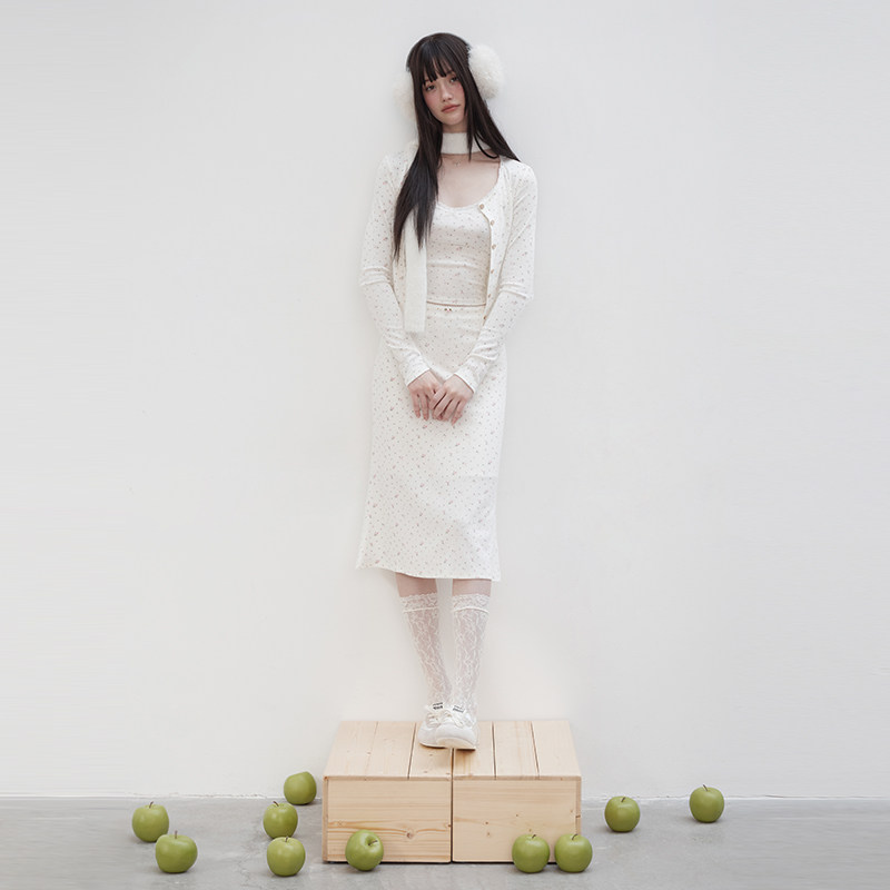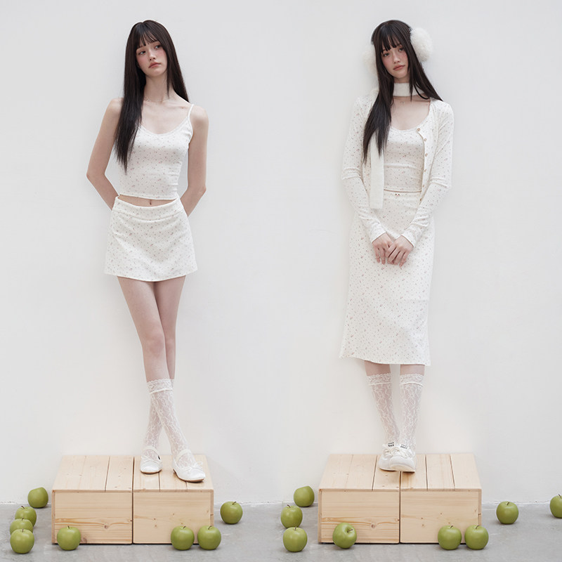 T恤长短半裙女套装 开衫 Studio春秋小众甜美碎花吊带背心长袖 Mess