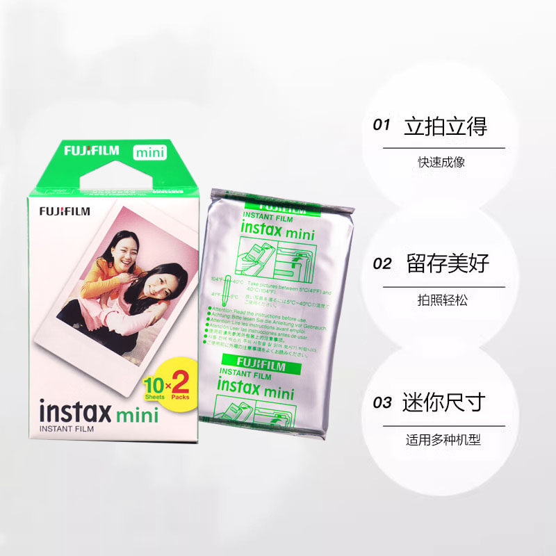 富士拍立得相纸白边20张适用mini系列一次成像 Fujifilm 自营