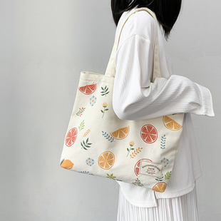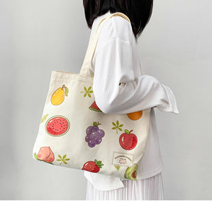 夏天小清新文艺水果帆布包女单肩手提包拉链布包学生上课装 书包