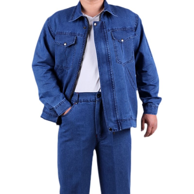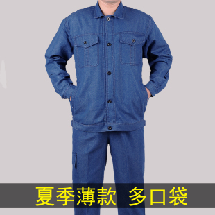 拉链电焊防烫纯棉透气长袖 男薄款 工地劳保工服 牛仔工作服套装 夏季