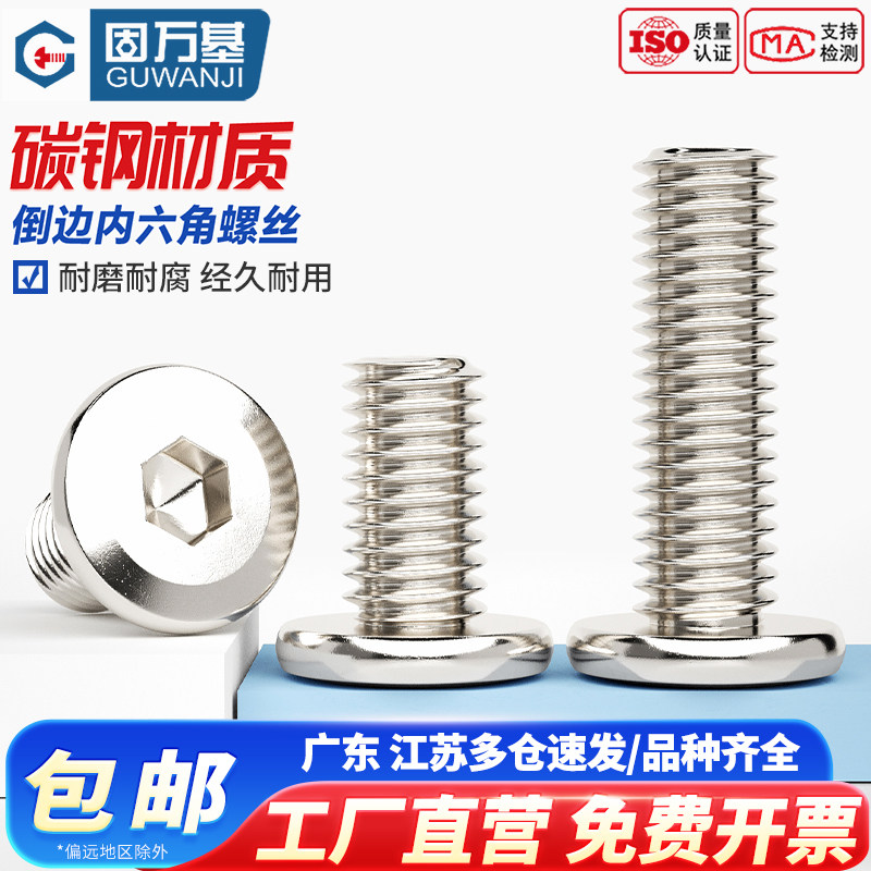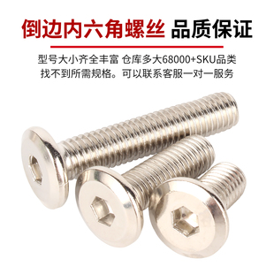 304 201不锈钢倒边内六角大平头螺丝家具圆头斜边螺栓34M5M6M8M12