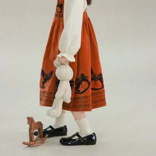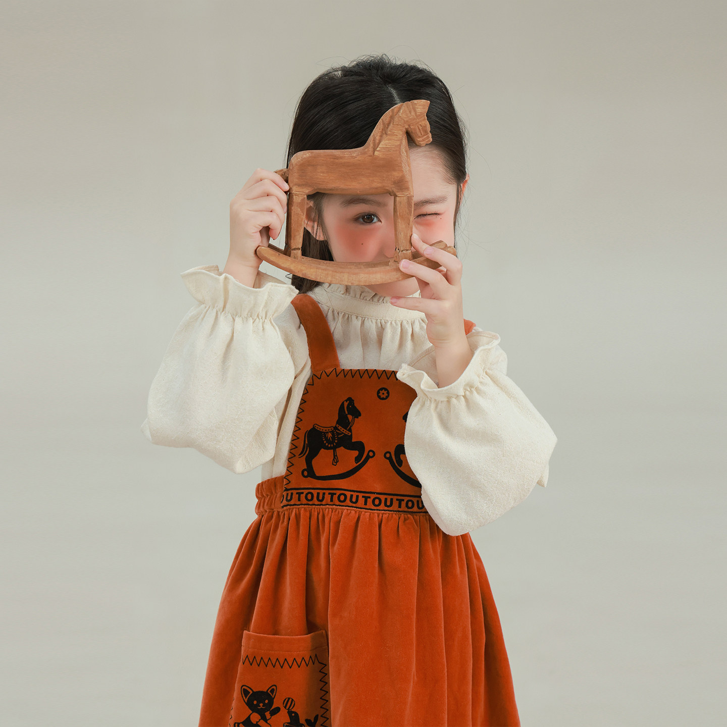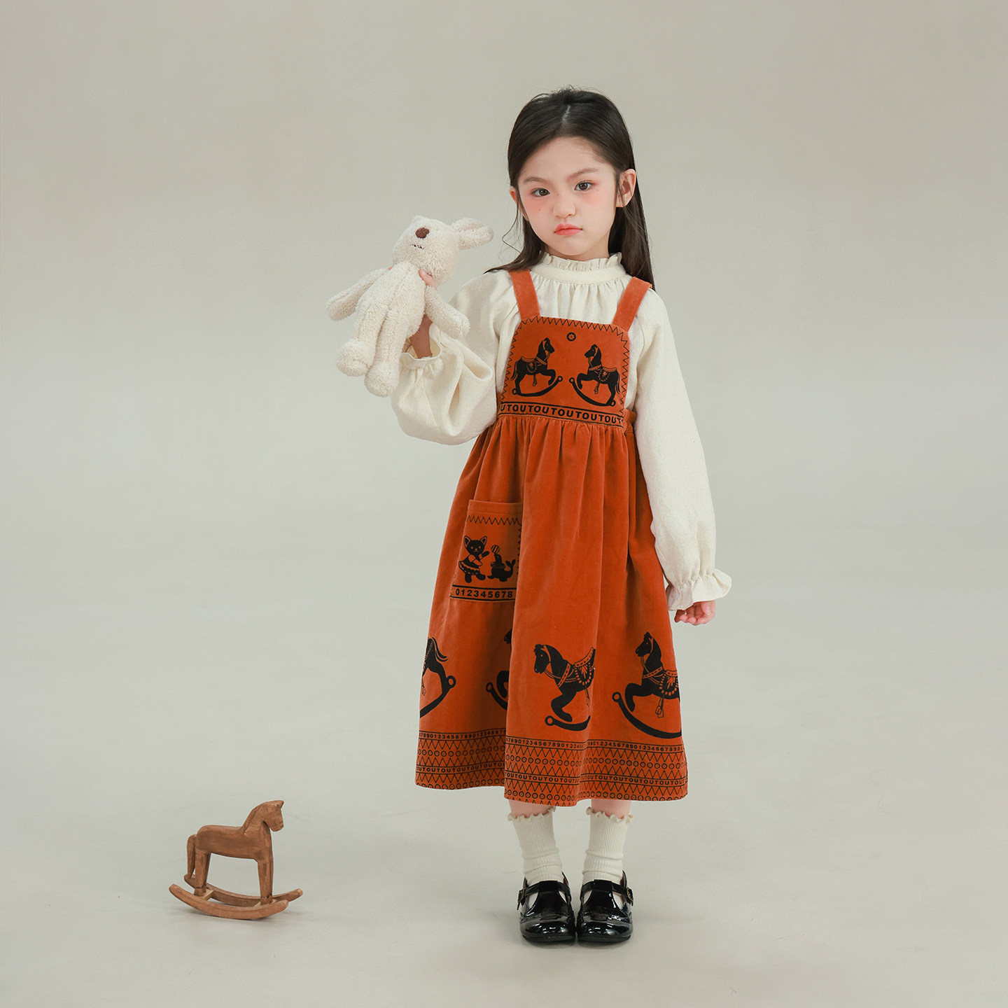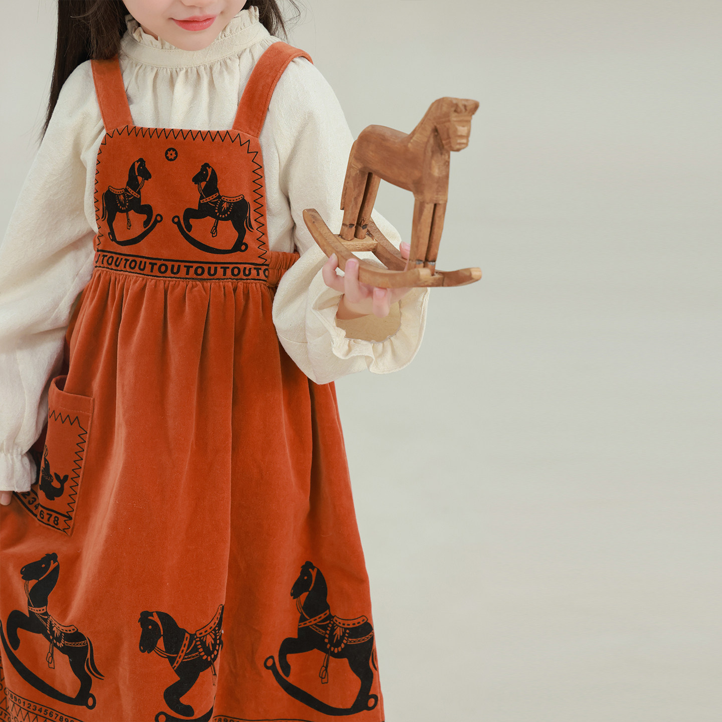 大耳象女童木马印花背带裙2026春季 宝儿纯棉宽松连衣裙子 新款