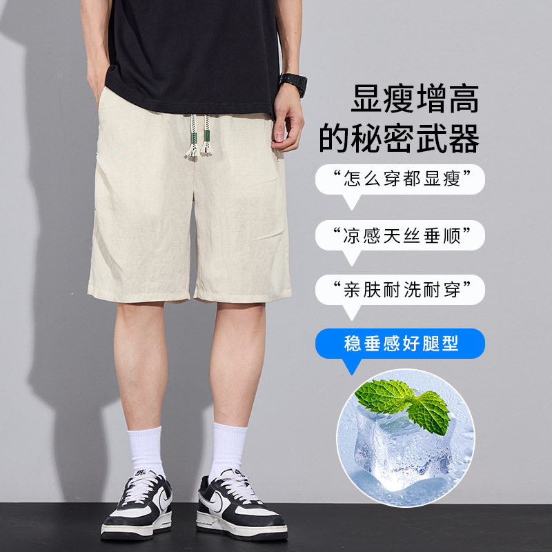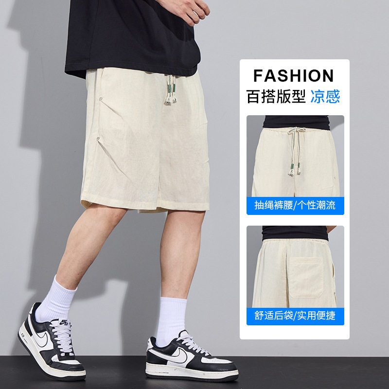 短裤 百搭运动休闲中裤 夏季 透气薄款 宽松五分裤 莱赛尔天丝亚麻男士