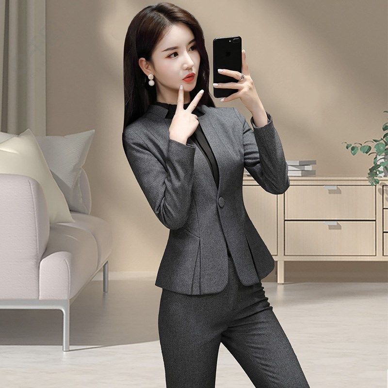 气质西服套装 大学生面试正装 工作 外套女春秋高端s职业装 灰色西装