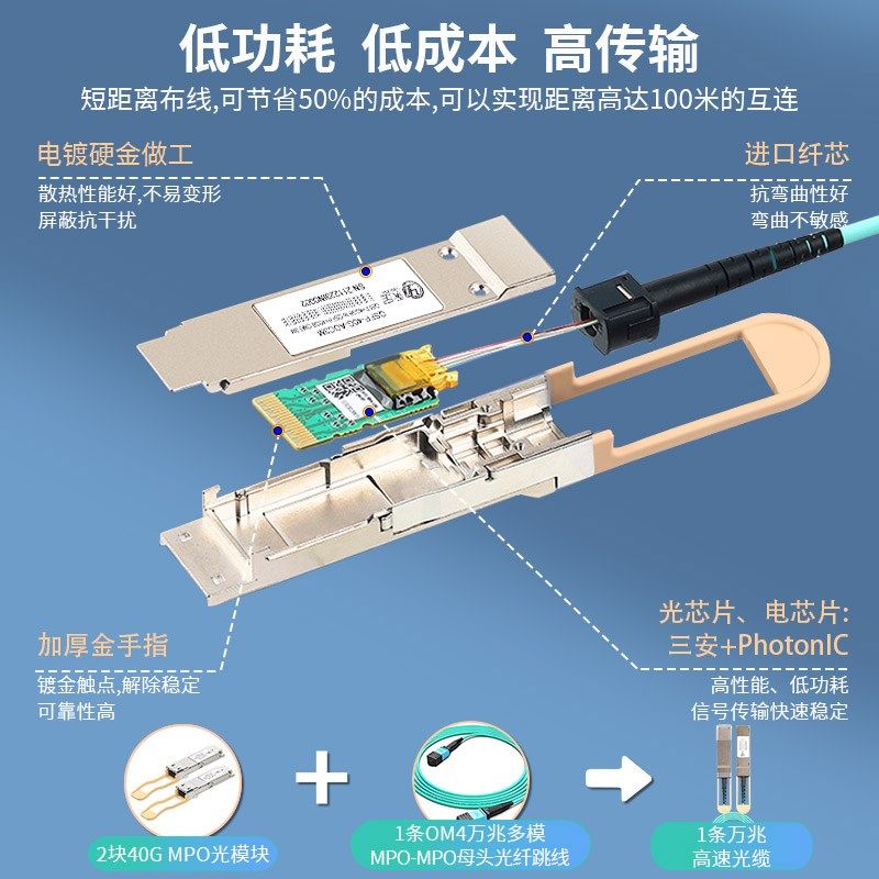 永定10G万兆200G400G有源AOC光缆SFP堆叠线OM3直连高速传输兼容思