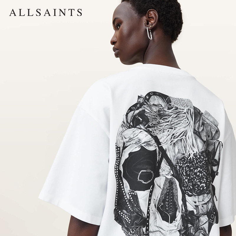ALLSAINTS女士艺术印花T恤宽松休闲落肩短袖 W083JD 2026年春季